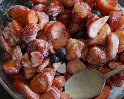 Ambrosia is a variation on the traditional fruit salad. Most ambrosia recipes contain fresh or sweetened pineapple, mandarin oranges or fresh orange sections, miniature marshmallows,[1] and coconut.[2]